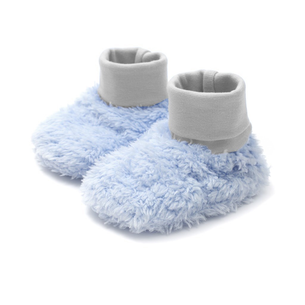 Botines de invierno para bebé con puño ajustable New Baby Nice Bear. Los botines están hechos de dos capas de materiales de alta calidad: una capa exterior de un material de fleece más grueso y cálido, y un forro de algodón en la parte inferior. Composición: capa exterior 80% algodón, 20% poliéster, forro: 100% algodón.