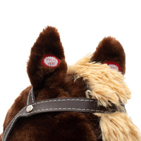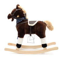 El suave caballito mecedor Baby Mix ha sido diseñado para niños que aman la aventura. ¡Se parece a uno de verdad, así que tu pequeño se sentirá como un auténtico jinete! El caballito está hecho de suave felpa, tiene un pañuelo decorativo alrededor del cuello y cuenta con patines mecedores de madera cuyo perfil protege al niño de caer. La silla cómoda, las riendas firmes, los estribos de metal, las asas de madera y los estables patines mecedores garantizan aún más estabilidad y comodidad durante el balanceo. Está fabricado con material de felpa suave, y los patines y asas de madera se pueden desmontar fácilmente. Al presionar los botones en las orejas, el caballito mueve la cola, mueve la boca, emite sonidos de galope, relincha y canta una canción de vaquero. Las tres baterías AA de 1,5 V se insertan en un compartimento ubicado en el vientre del caballito y no están incluidas en el paquete. Durante el balanceo, el niño aprende a coordinar los movimientos de su cuerpo con el caballito, lo que mejora el equilibrio y la motricidad general del niño.
