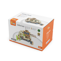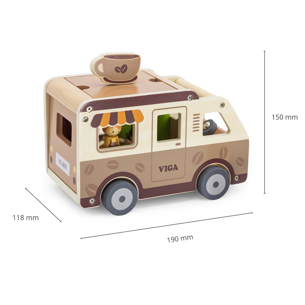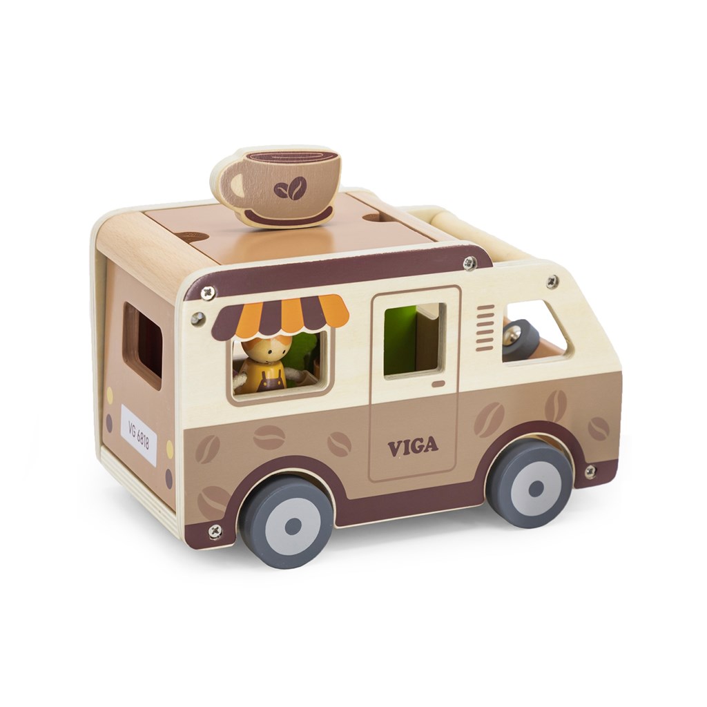 La construcción de madera sólida y los suaves colores pastel aplicados con pinturas no tóxicas hacen que el juguete sea no solo estéticamente agradable, sino también seguro para los más pequeños. El conjunto está diseñado pensando en el desarrollo de la imaginación, las habilidades manuales y las capacidades sociales de los niños, y ofrece muchas horas de diversión creativa. Perfecto para los niños que aman las aventuras y sueñan con su propia coquetera sobre ruedas.