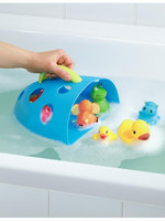 Caja de plástico para juguetes de baño con asa y ventosa para sujeción. Dimensiones: aproximadamente 25x22 cm. Fabricado con material plástico de alta calidad.