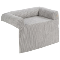 La funda está hecha de una suave y agradable tela de pana, que es resistente y también ofrece alta resistencia al desgaste. Además, el fondo recubierto de una tela antideslizante proporciona muy buena adherencia, dificultando el movimiento no deseado de la cama en el suelo.
