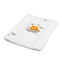 Práctica alfombrilla para cambiar pañales con un diseño moderno New Baby Zorro, fabricada en material plástico impermeable con una ilustración de un zorro y nubes. Producto de la marca checa. La alfombrilla está rellena de poliéster y se puede usar en una cómoda u otro lugar para cambiar pañales; gracias a su bajo peso, es móvil. Está fabricada con la mejor lámina certificada, que no contiene sustancias nocivas y es sensible a la piel más delicada del bebé. Dimensiones: aproximadamente 70x50 cm, grosor aproximadamente 4 cm.