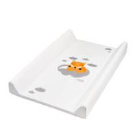 Práctica almohadilla cambiadora moldeada New Baby, fabricada en material plástico impermeable con un diseño de un zorro y nubes. Producto de marca checa. La almohadilla está rellena de poliéster, tiene bordes laterales elevados y se puede usar en una cómoda o en otro lugar para cambiar al bebé; gracias a su bajo peso, es móvil. Está fabricada con la mejor película certificada que no contiene sustancias nocivas y es suave con la piel más delicada del bebé. Sin base dura. Dimensiones: aproximadamente 80x50 cm, grosor aproximadamente 2 cm, altura de los bordes 8 cm.