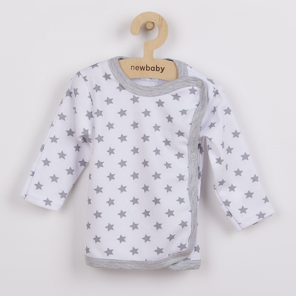 Hermosa camiseta clásica para bebés New Baby Classic II. La camiseta es de un solo color con estrellitas. Se abotona con botones en los hombros y en el costado, lo que facilita el vestirse y el cambio de pañales. Las mangas de la camiseta se pueden doblar. Al doblar la manga se evita que el bebé se rasguñe con sus pequeñas uñas y se mantienen las manitas del bebé calentitas. La camiseta está hecha de un material muy suave y de calidad, en el que el bebé se sentirá muy cómodo. Para New Baby, la satisfacción del cliente es muy importante, por eso te ofrecemos nuestra nueva y calidad colección Classic II. Composición: 100% algodón.