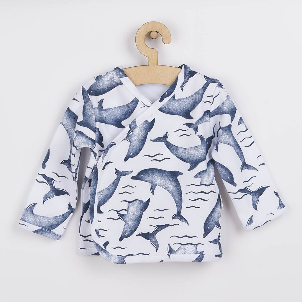 Camiseta innovadora para bebés Nicol Dolphin. La camiseta está completamente estampada con imágenes de delfines. El cierre lateral con broches a lo largo de toda la longitud facilita el vestir. Está hecha de un material muy suave y de alta calidad, que es ideal para los recién nacidos. La camiseta te encantará por su diseño creativo, que le quedará muy bien a tu bebé. Composición: 100% algodón.