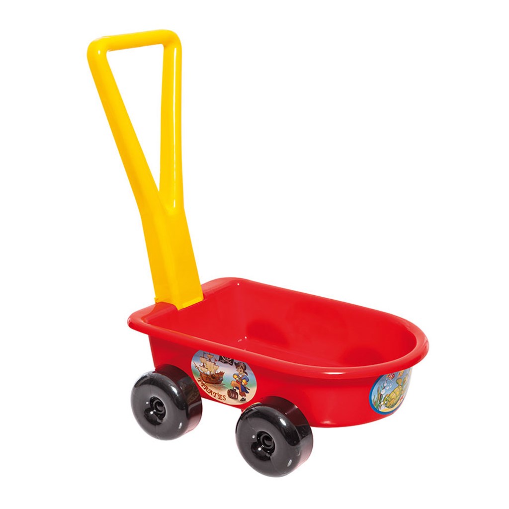 Carrito de colores para niños hecho de plástico de alta calidad, con cuatro ruedas y un mango móvil. El carrito también presenta imágenes divertidas. Dimensiones: 43x27 cm. Recomendado para niños a partir de 36 meses. Color - rojo.