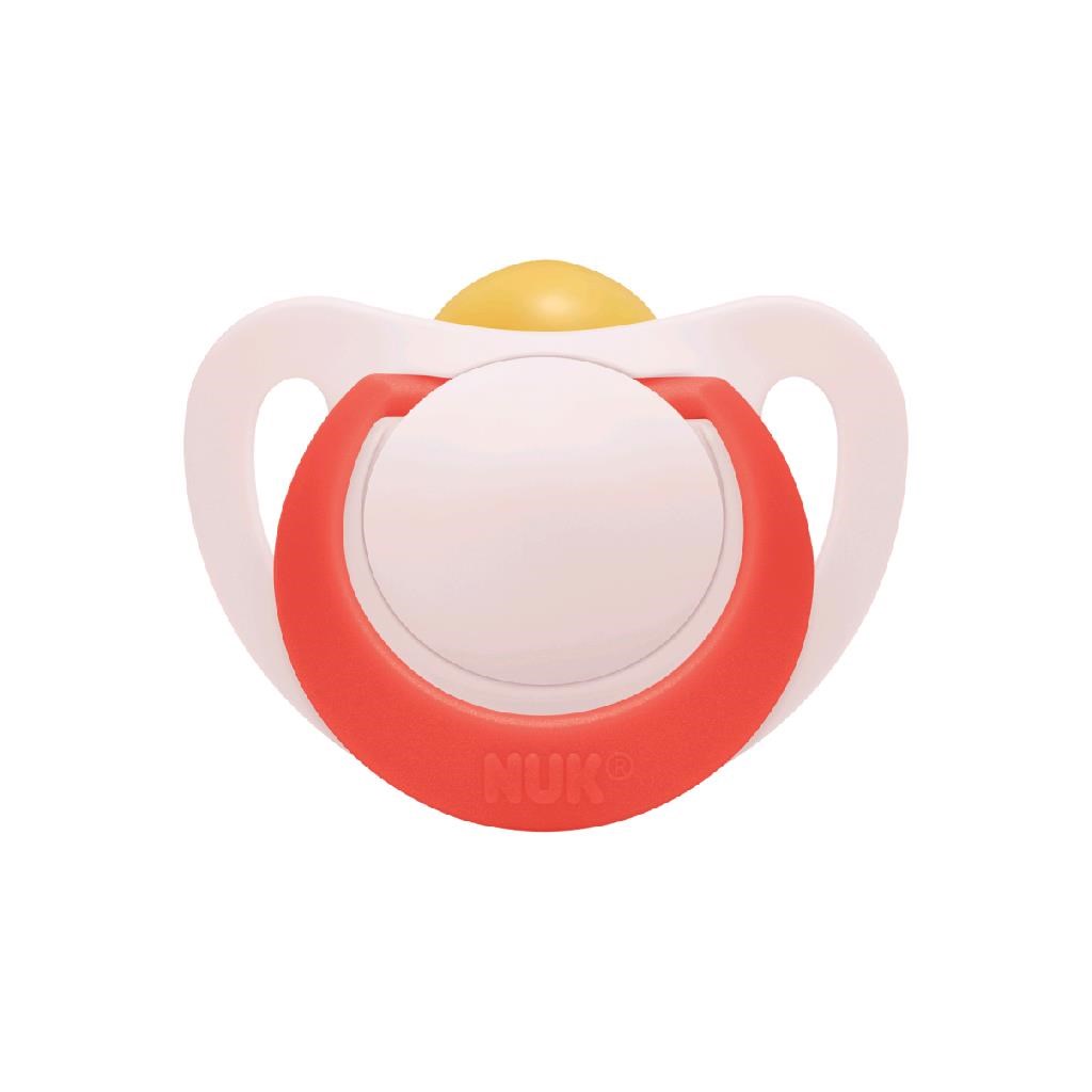 Chupete de látex para bebés NUK Star 18-36 meses. Práctico anillo en el chupete, fabricado en polipropileno de alta calidad, fácil de agarrar incluso para las manitas más pequeñas. El chupete NUK Star es realmente suave en la boca del bebé. La zona especialmente blanda en la parte superior del chupete (área con una capa de silicona delgada) se ajusta aún más cómodamente al paladar. Al mismo tiempo, la parte inferior del chupete NUK Star deja suficiente espacio para los movimientos naturales de succión de la lengua. Adecuado para el correcto desarrollo de la mandíbula y especialmente amable durante la lactancia: permite alternar fácilmente entre la lactancia y el sosiego con el chupete. El material de silicona transparente se limpia fácilmente y es especialmente resistente al calor. No contiene sustancias nocivas, es resistente a ebullición, sin olor, transparente y tiene una superficie suave. Todos los chupetes NUK cuentan con el sistema de aire NUK, que permite que la delicada piel del bebé respire. Talla 3 (18-36 meses). Todos los chupetes NUK son regularmente probados y monitoreados por institutos independientes. Empacado en una caja libre de BPA.