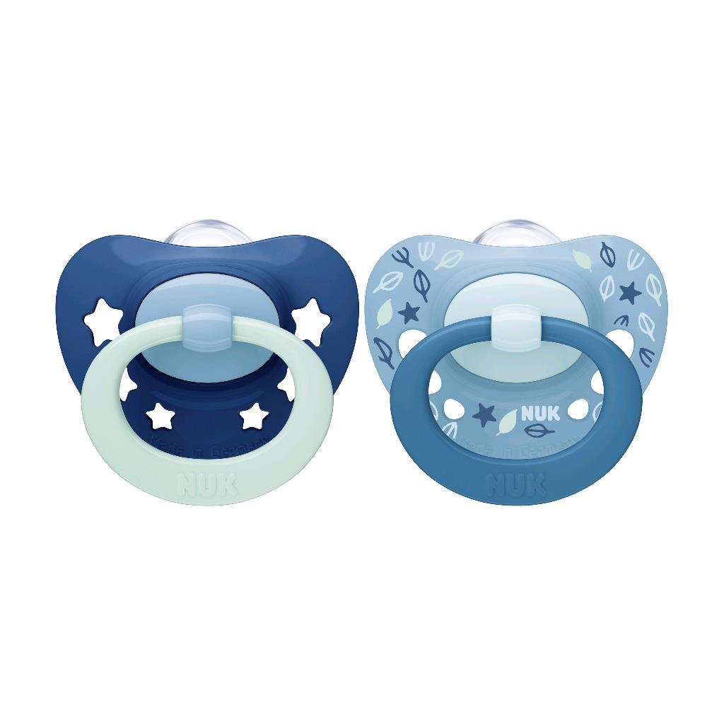 Chupete NUK Signature 6-18 meses. El chupete tiene un hermoso diseño a color. Su forma ortodóntica apoya el desarrollo de toda la cavidad bucal del bebé. El chupete ha sido mejorado y cuenta con un diseño aún más plano. Está fabricado con plástico de alta calidad y silicona. La tapa de la tetina y el anillo están hechos de polipropileno y no contienen BPA. La ventaja de la silicona es que es inodora y fácil de limpiar. No contiene BPA. Tamaño 2 (6-18 meses). Todos los chupetes NUK son regularmente probados y monitoreados por institutos independientes. En el paquete hay 2 unidades.