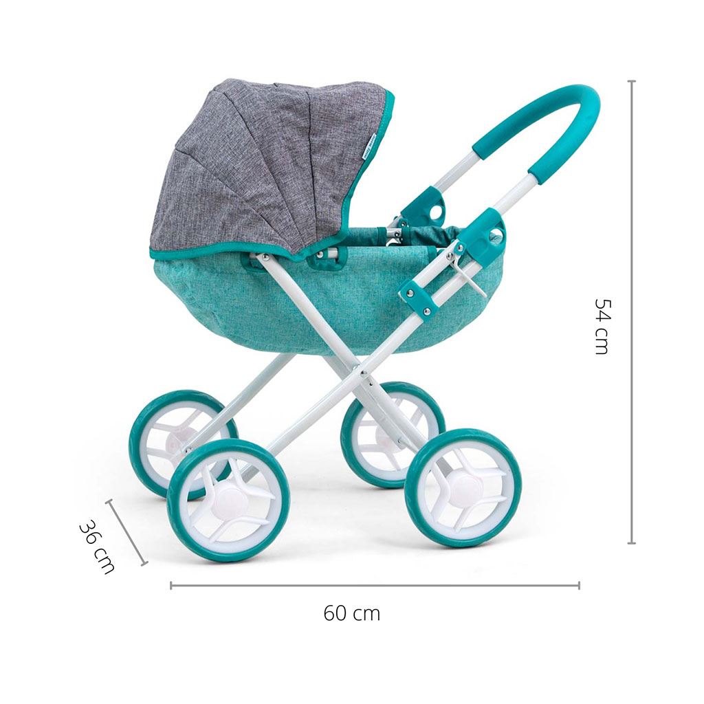 Dori es un cochecito profundo destinado a muñecas de hasta 40 cm de longitud. En la cuna hay un colchón que combina a la perfección con el cochecito. Además, está equipado con una capota extraíble y plegable.