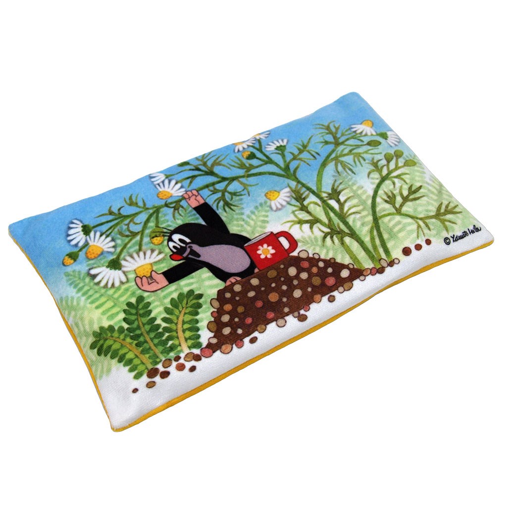 Almohadilla con bolsa extraíble llena de semillas de lino, que se puede calentar en el microondas y usar como compresa caliente o calentador bajo las sábanas. Funda extraíble. Lavable, sin la bolsa de semillas. Material: micro terciopelo.