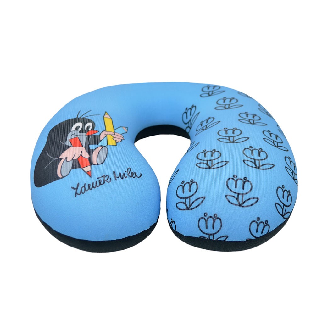 Almohada de viaje que sirve como soporte para la cabeza / cabezal. Fabricada con material flexible, rellena de pequeñas bolitas de poliestireno para mayor comodidad durante los viajes. Lavable.
