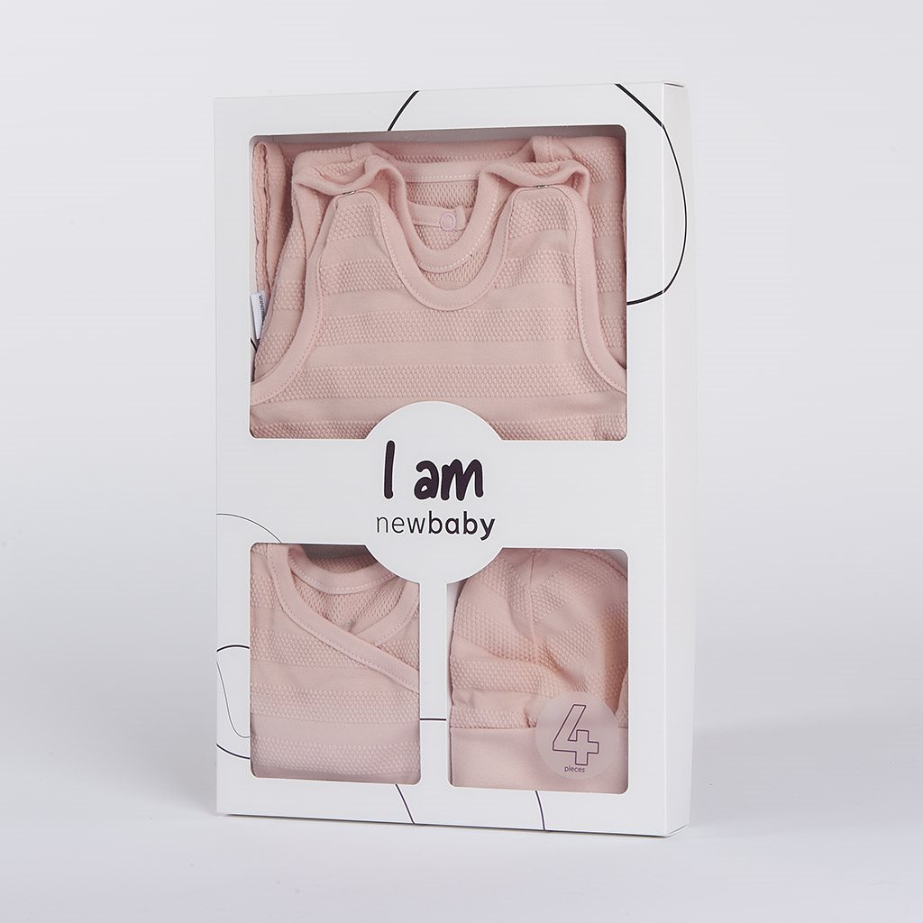 Conjunto adorable de 4 piezas para bebés de la marca checa New Baby I AM. Este conjunto está fabricado con un material muy suave, agradable y de alta calidad, ideal para bebés y perfecto no solo para el hospital. Incluye un body de manga larga de cierre completo, un pelele, una chaquetita y un gorrito. El body cuenta con un cierre lateral a lo largo de toda la longitud y botones en la entrepierna. El pelele tiene cierres a presión en los tirantes y en la entrepierna, lo que facilita vestir y cambiar al bebé. La chaquetita se cierra con botones a lo largo de todo el frente. El gorrito, con un borde más ancho, se ajusta bien a la cabeza del bebé y no se desliza. Es muy práctico y no presiona la cabecita del bebé. Todo el conjunto tiene un diseño nuevo y extraordinario con un patrón de tela atractivo. Está diseñado pensando en las necesidades del bebé y también es perfecto como un regalo encantador. El conjunto viene en una práctica caja ecológica. Composición: 100% algodón.