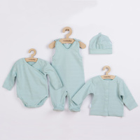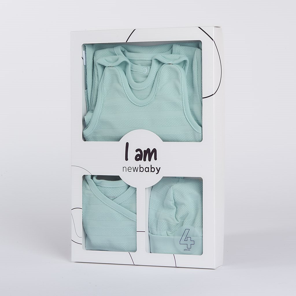 Conjunto adorable de 4 piezas para bebés de la marca checa New Baby I AM. Este conjunto está fabricado con un material muy suave, agradable y de alta calidad, ideal para bebés y perfecto no solo para el hospital. Incluye un body de manga larga de cierre completo, un pelele, una chaquetita y un gorrito. El body cuenta con un cierre lateral a lo largo de toda la longitud y botones en la entrepierna. El pelele tiene cierres a presión en los tirantes y en la entrepierna, lo que facilita vestir y cambiar al bebé. La chaquetita se cierra con botones a lo largo de todo el frente. El gorrito, con un borde más ancho, se ajusta bien a la cabeza del bebé y no se desliza. Es muy práctico y no presiona la cabecita del bebé. Todo el conjunto tiene un diseño nuevo y extraordinario con un patrón de tela atractivo. Está diseñado pensando en las necesidades del bebé y también es perfecto como un regalo encantador. El conjunto viene en una práctica caja ecológica. Composición: 100% algodón.