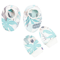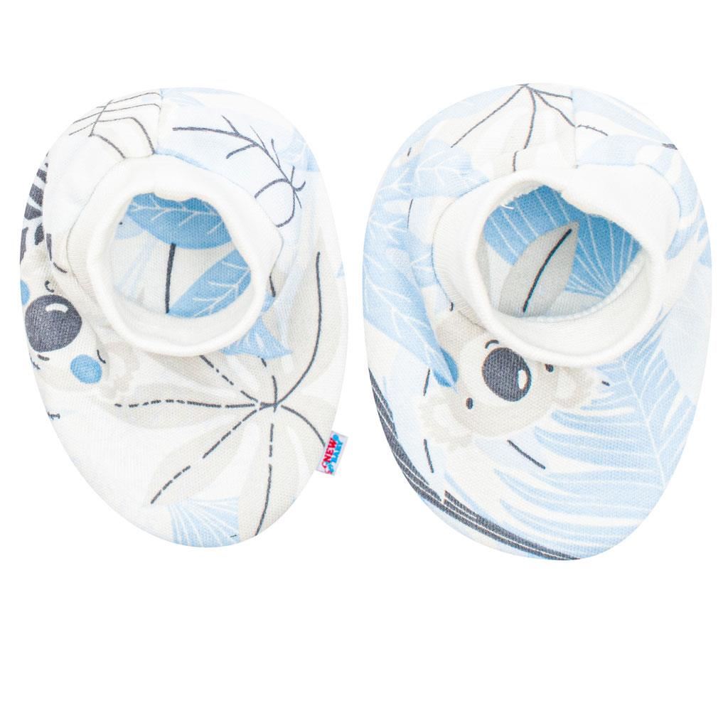 Hermoso y práctico conjunto de algodón de la marca checa New Baby Lovely. El conjunto consiste en zapatitos y manoplas. Los zapatitos y las manoplas están decorados con un patrón encantador y cuentan con puños ajustables. Composición: 100% algodón.