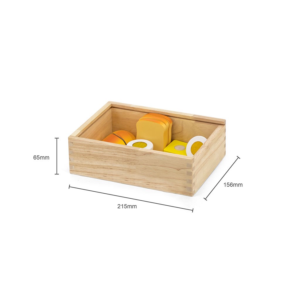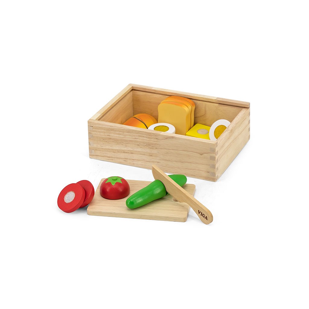 El set de corte - desayuno de Viga es el juguete ideal que estimula la imaginación de los niños. Con un cuchillo seguro hecho de madera, el niño puede "cortar" fácilmente pan, huevo o queso. Además, todos los productos están unidos con velcro para una diversión interminable.