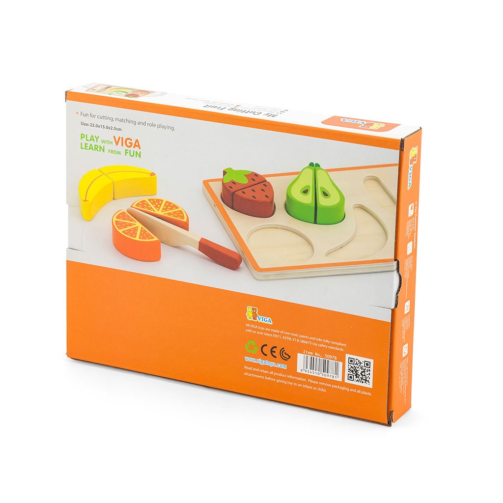 El set de corte de la empresa Viga es el juguete ideal que estimula la imaginación infantil. Durante el juego en conjunto, cada padre podrá enseñar a su hijo cómo usar complementos de cocina afilados en el futuro. Como bonus, todos los productos están unidos con velcro, lo que permite volver a ensamblarlos fácilmente. Todo el set está hecho de madera pintada y decorada con colores no tóxicos.