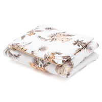 Maravilloso set reversible New Baby Safari para el carrito. El set está fabricado con dos tipos de telas. Un material de algodón con un hermoso motivo infantil por un lado y material de terciopelo por el otro. El terciopelo es muy agradable y suave al tacto y mantiene su forma original durante mucho tiempo. Es ideal tanto para bebés desde el nacimiento como para niños mayores, ya que puede usarse como manta para jugar, en el carrito o al aire libre. El set incluye una almohadita y una manta. Nos enfocamos en la calidad, por lo que el set de terciopelo está hecho de un material muy de alta calidad que no destiñe y no provoca reacciones alérgicas. Es suave al tacto, cálido, acogedor, único y muy diferente a los demás. Todo está relleno con fibra antialérgica. Composición: por un lado 100% algodón impreso con un hermoso diseño infantil, el otro lado es tela de terciopelo - 100% poliéster, relleno 100% fibra antialérgica. El material cumple con la norma Oeko-Tex Standard 100. Dimensiones: almohadita: aprox. 30x25 cm, manta: aprox. 75x50 cm. Estos productos son seguros porque: