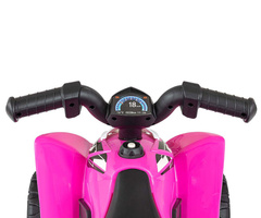 Las grandes y anchas ruedas con un diseño todoterreno garantizan movilidad en los paseos fuera de casa y el asiento moldeado ofrece suficiente confort y seguridad para los más pequeños. La estabilidad y resistencia del quad están garantizadas por los ejes de acero de las ruedas. Incluye un claxon, que hará que la diversión sea aún más interesante.