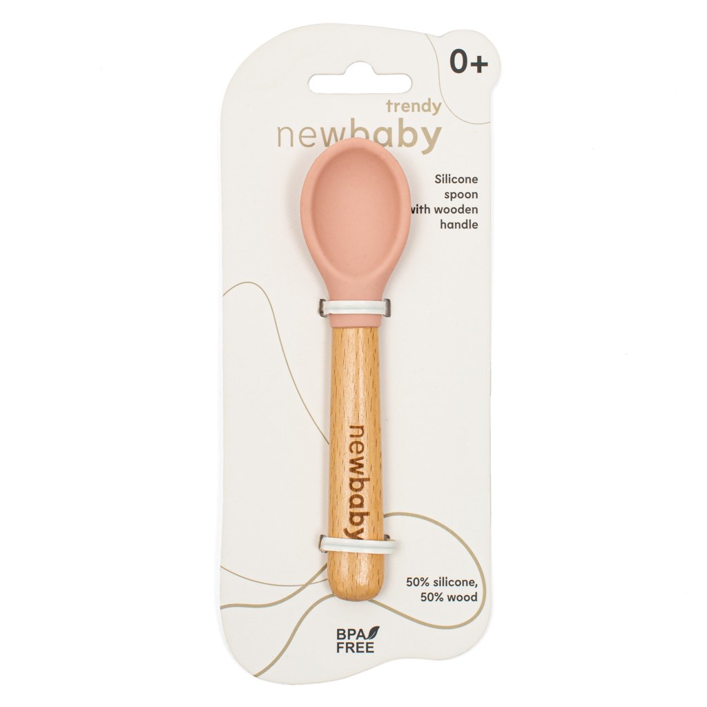 La cuchara infantil de la línea New Baby Trendy combina un diseño moderno con practicidad. La combinación de un mango de madera con un elegante grabado del logotipo de la marca y silicona de la más alta calidad sin BPA garantiza la seguridad y el confort al alimentar a su bebé.