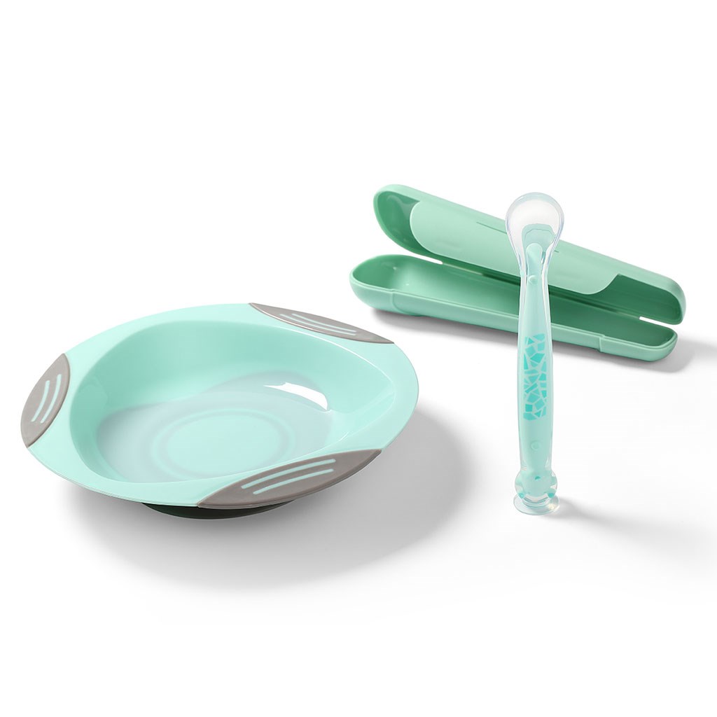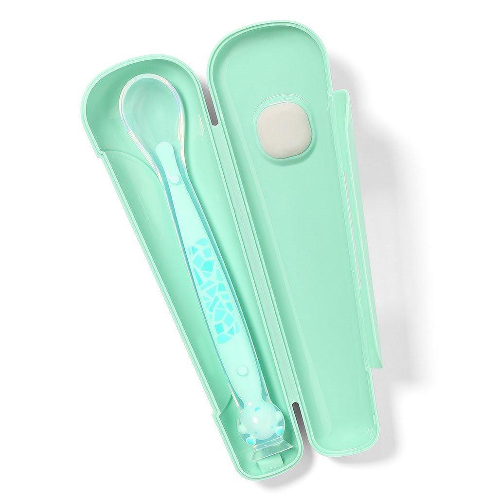 La cuchara de silicona con succión en estuche es ideal para casa, paseos o viajes. Tiene una forma adecuada y es perfecta para que tu bebé aprenda a comer solo. Fabricada con silicona de alta calidad apta para contacto con alimentos.