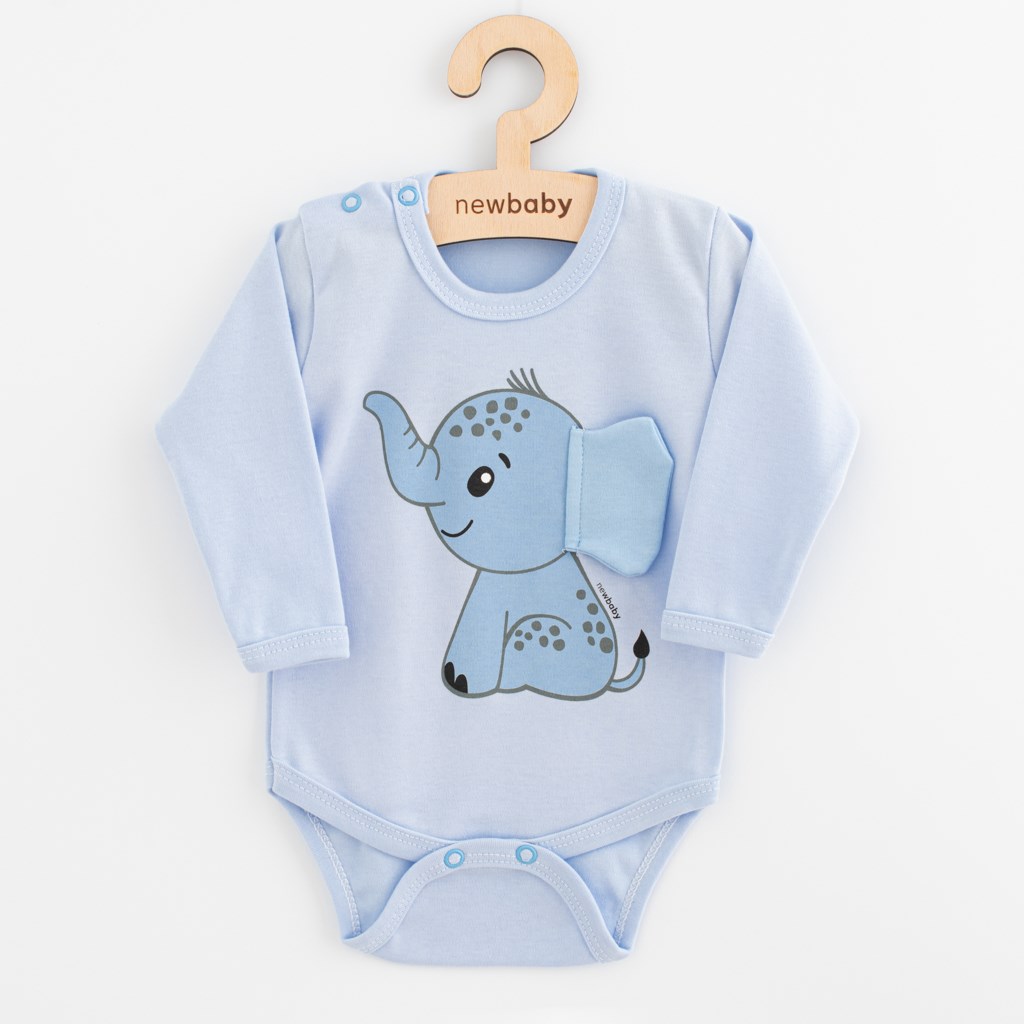 Bonito body de algodón para bebé con mangas largas de la marca checa New Baby Happy Elephant. El body está decorado con una adorable imagen de un elefante con una oreja en 3D, que también puede servir como elemento tranquilizador o juguete para ayudar a los niños a dormir. El práctico cierre de botones en el hombro y entre las piernas facilita mucho el vestir y cambiar al bebé. Composición: 100% algodón. OEKO-TEX STANDARD 100. Creemos que nuestra colección exclusiva te encantará por su calidad, suavidad y diseño.