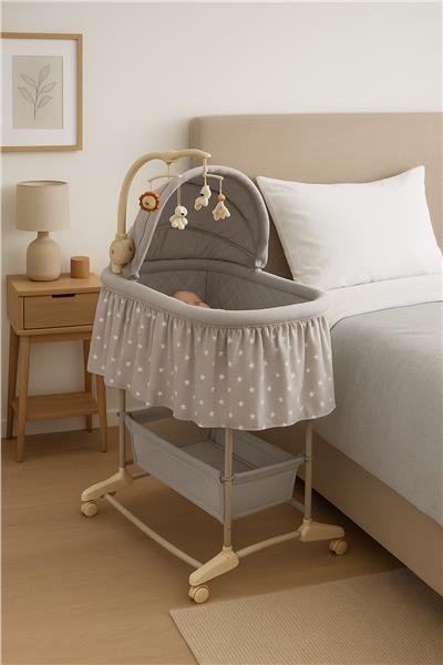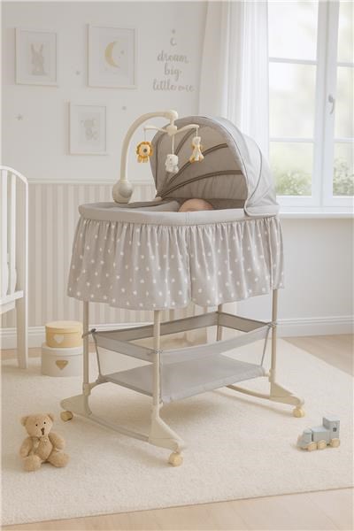 La cuna multifuncional New Baby es la elección ideal tanto para los niños como para los padres que valoran la funcionalidad y la seguridad. Este producto puede usarse como cuna o como mecedora. Su movilidad proporciona una gran comodidad, ya que el bebé siempre estará cerca de sus padres. La práctica cesta permite tener todo lo necesario al alcance de la mano y reaccionar a las necesidades del pequeño sin tener que alejarse de él. La funda de la cuna está hecha de un material transpirable y suave al tacto, que se puede quitar y lavar fácilmente. El móvil con animales de colores está equipado con luz nocturna, un módulo musical con 8 melodías y una función de suaves vibraciones con posibilidad de ajustar su intensidad. Funciona con 3 pilas AA LR6-1,5 V (no incluidas). Uno de los lados de la cuna se puede abrir, lo que es muy útil durante el cuidado diario y, a menudo, nocturno de su pequeño.