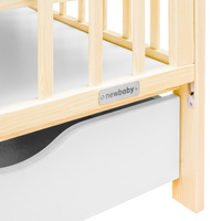 Presentamos la cuna de madera para bebés de la marca checa New Baby, con un nuevo sistema de lateral abatible, desarrollado por expertos para mayor seguridad, comodidad y fácil operación con una sola mano.