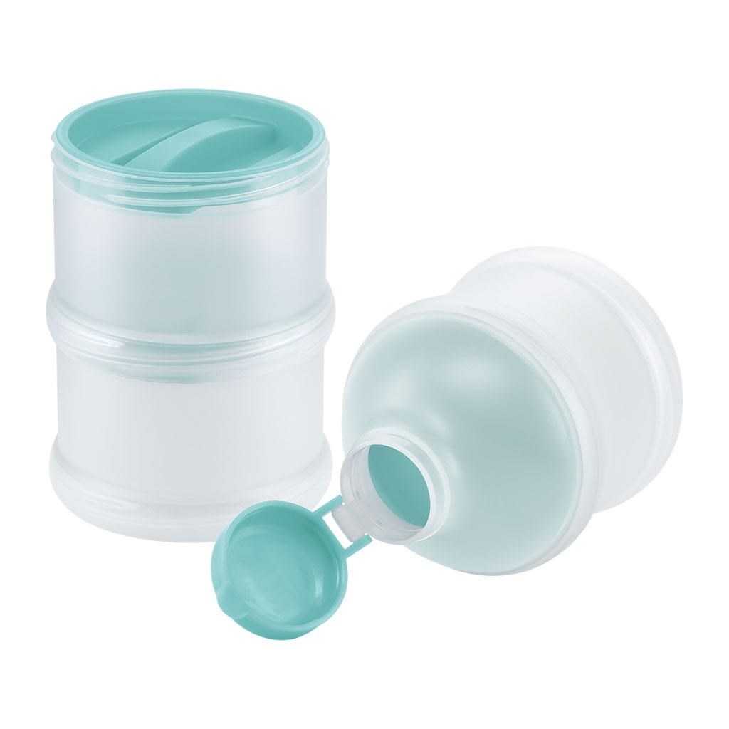 Dispensador de leche en polvo NUK. Dispensador de leche en polvo en un práctico set, en el que podrás confiar incluso fuera de casa. Cada recipiente almacena de forma segura la cantidad medida de leche en polvo y, con la ayuda de un embudo, podrás verter la leche de forma segura en el biberón del bebé sin hacer desorden alrededor.