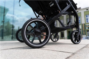 Grandes ruedas – delanteras de 7" (~18 cm), traseras de 9,5" (~24 cm), con opción de bloqueo en línea recta y suspensión en ambos ejes.