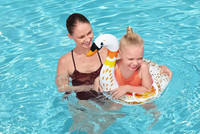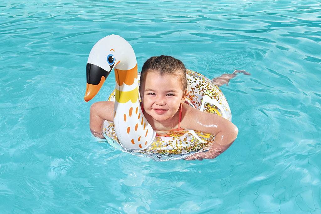 Este inflável es único y tiene encanto. Su cuello largo y elegante es ideal para agarrar o abrazar. Tiene dos cámaras de aire que facilitan el inflado y desinflado y ayudan a mantener la flotabilidad en el agua. El material duradero utilizado en su fabricación ha sido previamente probado para asegurar su resistencia tanto en verano como fuera de él. Las purpurinas que adornan el inflable brillarán en la playa o en la piscina. Se puede usar a partir de los 3 años. Una ventaja indiscutible del inflable es que promueve la actividad física.