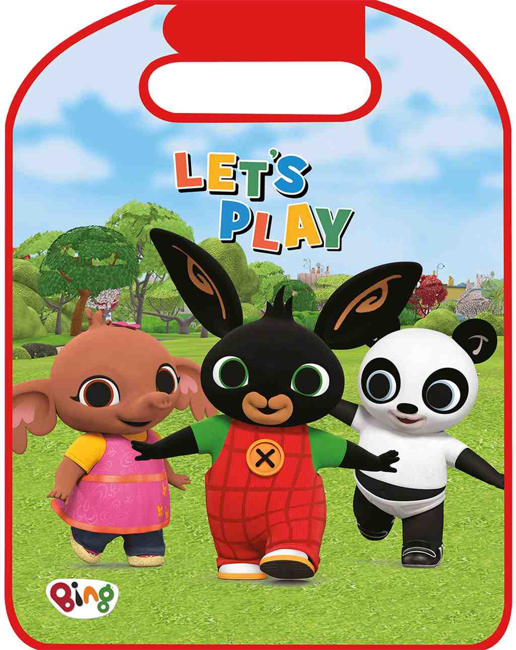 Práctica funda para automóvil de material translúcido que protege la parte trasera del asiento de rasguños y manchas. Divertidas imágenes del personaje Bing alegrarán los viajes de su niño. Universal: se adapta a cualquier asiento y se puede fijar fácilmente con goma. Material lavable de PVC, que se limpia fácilmente. Dimensiones 68x44,5 cm. Producto licenciado.