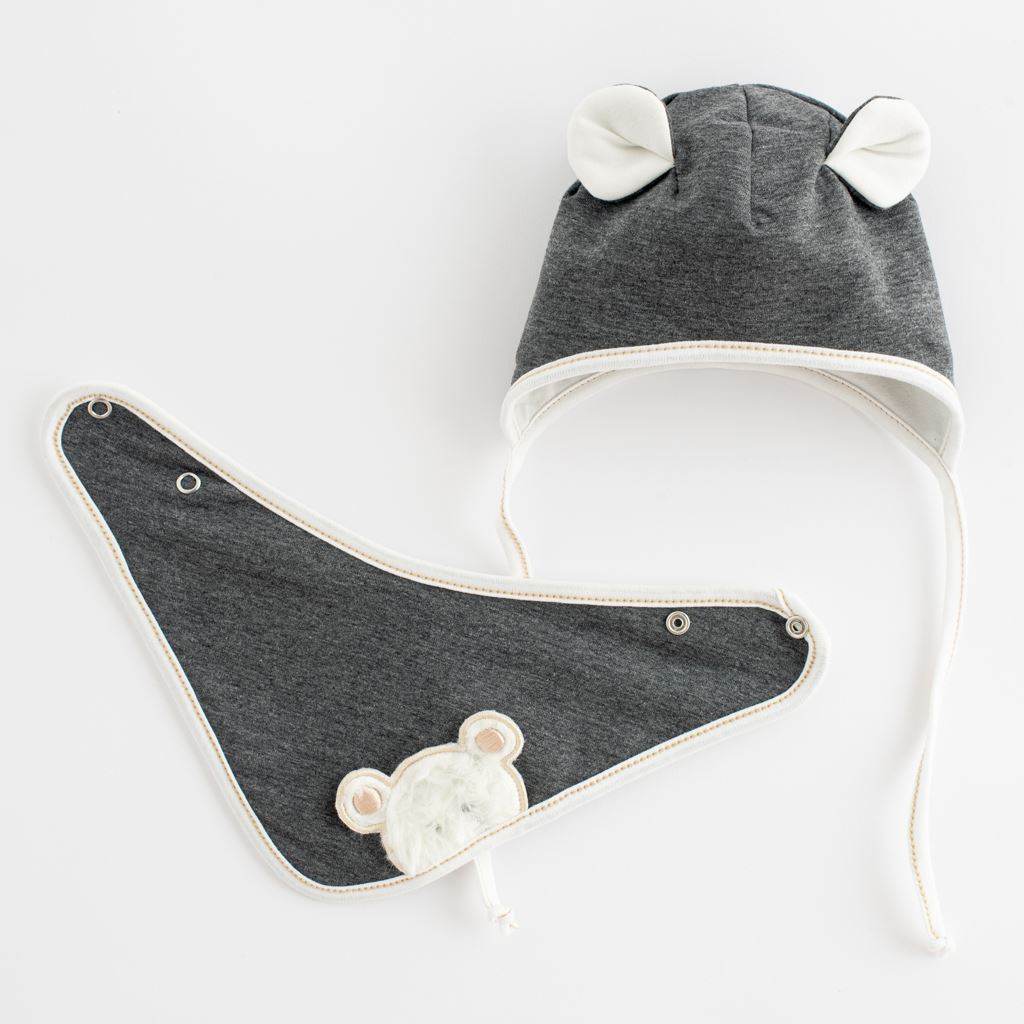 Set de primavera de 2 piezas de la marca checa New Baby Sebastian. El set está compuesto por un gorro y una bufanda. El gorro, con forro, está bellamente diseñado para adaptarse a las orejitas, se sujeta con cordones y se mantiene bien en la cabecita del bebé. La bufanda se puede ajustar a 2 tamaños. Un accesorio de calidad y muy práctico para cualquier clima, decorado con un dibujo de un osito. Para New Baby, la satisfacción del cliente es muy importante, por eso te ofrecemos el set de la colección New Baby Sebastian. Material exterior: 95% algodón, 5% elastano. Forro: 95% algodón, 5% elastano. Adecuado para primavera y otoño.