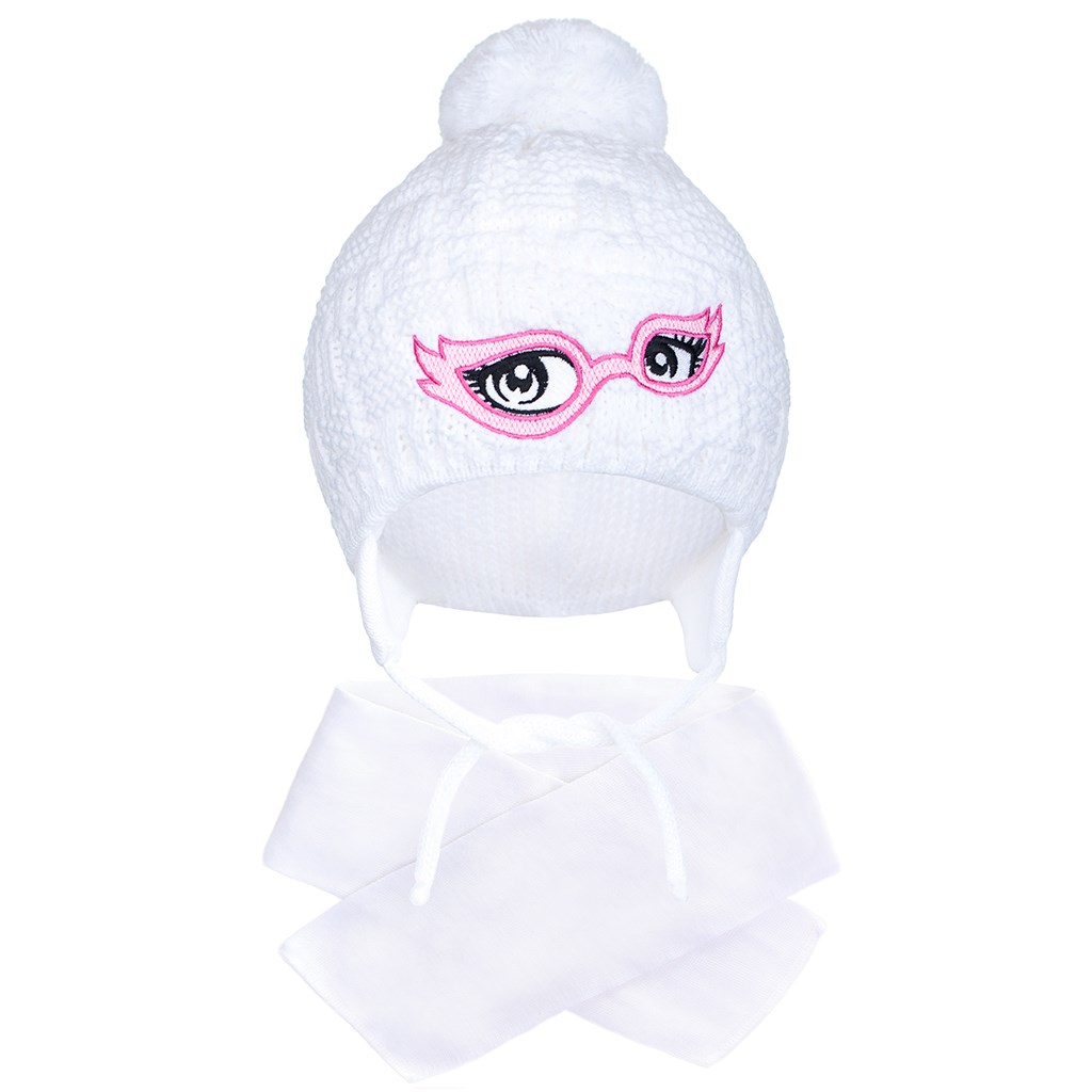 Hermoso gorro de invierno tejido New Baby. El gorro está decorado con una hermosa imagen de una máscara. Tiene cintas para atar, un forro de punto y un lindo pompón. Composición 100% algodón. El gorro es adecuado para los días de invierno. Ideal para niños pequeños y mayores. El gorro está diseñado para cubrir las orejas. Contorno alrededor de la cabeza 44-48 cm. Bufanda: tamaño: aproximadamente 96 cm.