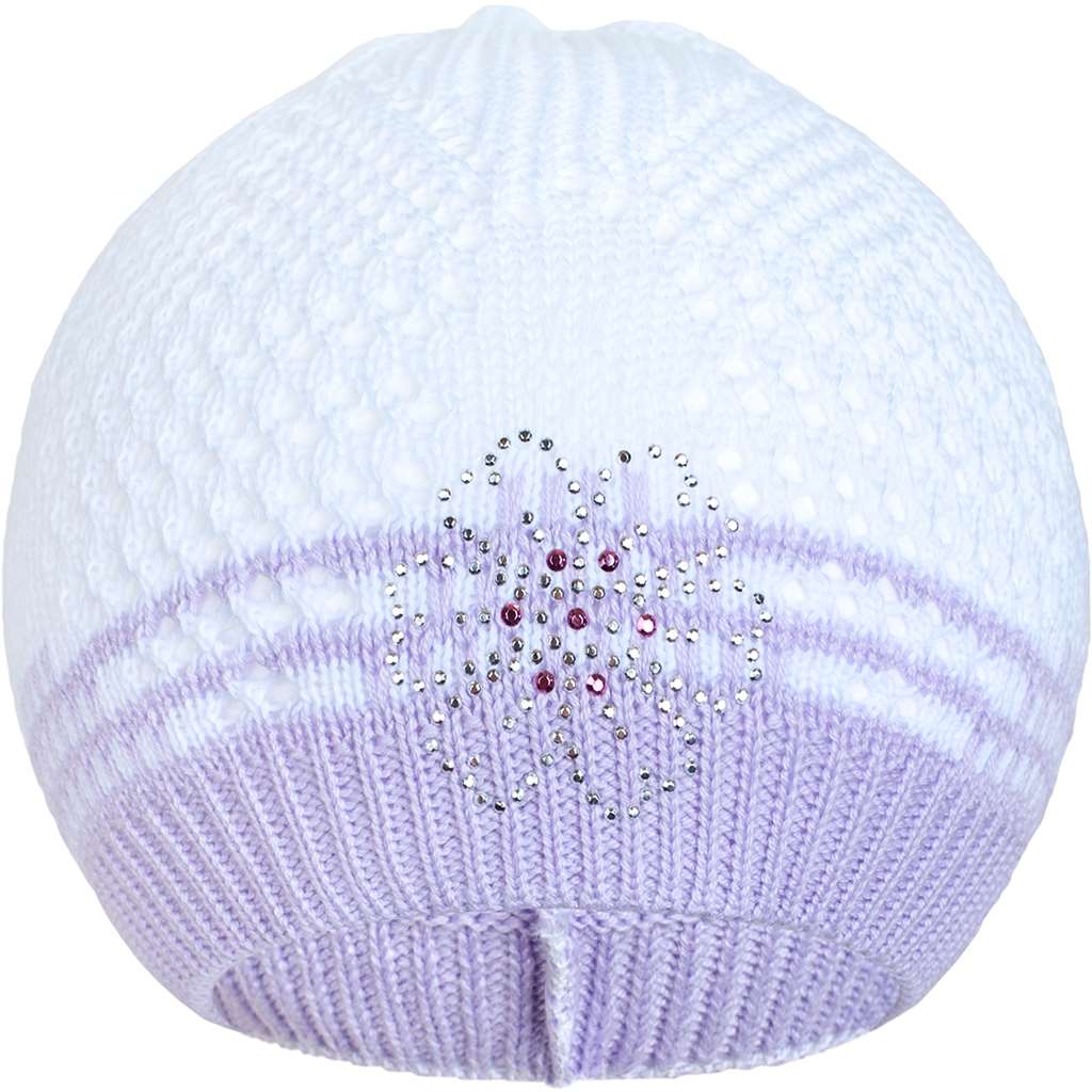 Gorro de primavera de punto New Baby. El gorro está adornado con una imagen de una flor, que está decorada con piedras brillantes. Está confeccionado con un material transpirable, por lo que es adecuado para los días de primavera y otoño. Ideal para niños pequeños y más grandes. Composición: 100% algodón. El material es flexible. Circunferencia alrededor de la cabeza aproximadamente 40-50 cm.