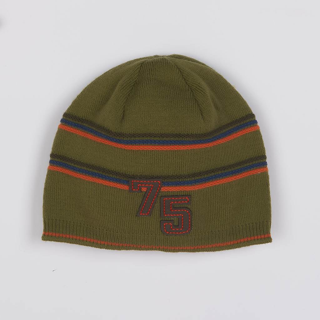 Bonita gorra para niños, adecuada para el uso diario de sus hijos. El corte clásico de la gorra de suave tejido se ajusta a la cabecita de su niño gracias a su material elástico. La gorra es de un solo color con rayas y el número 75. Muy agradable al tacto. Composición 100% acrílico. Talla 52-54. También adecuada para niños mayores.