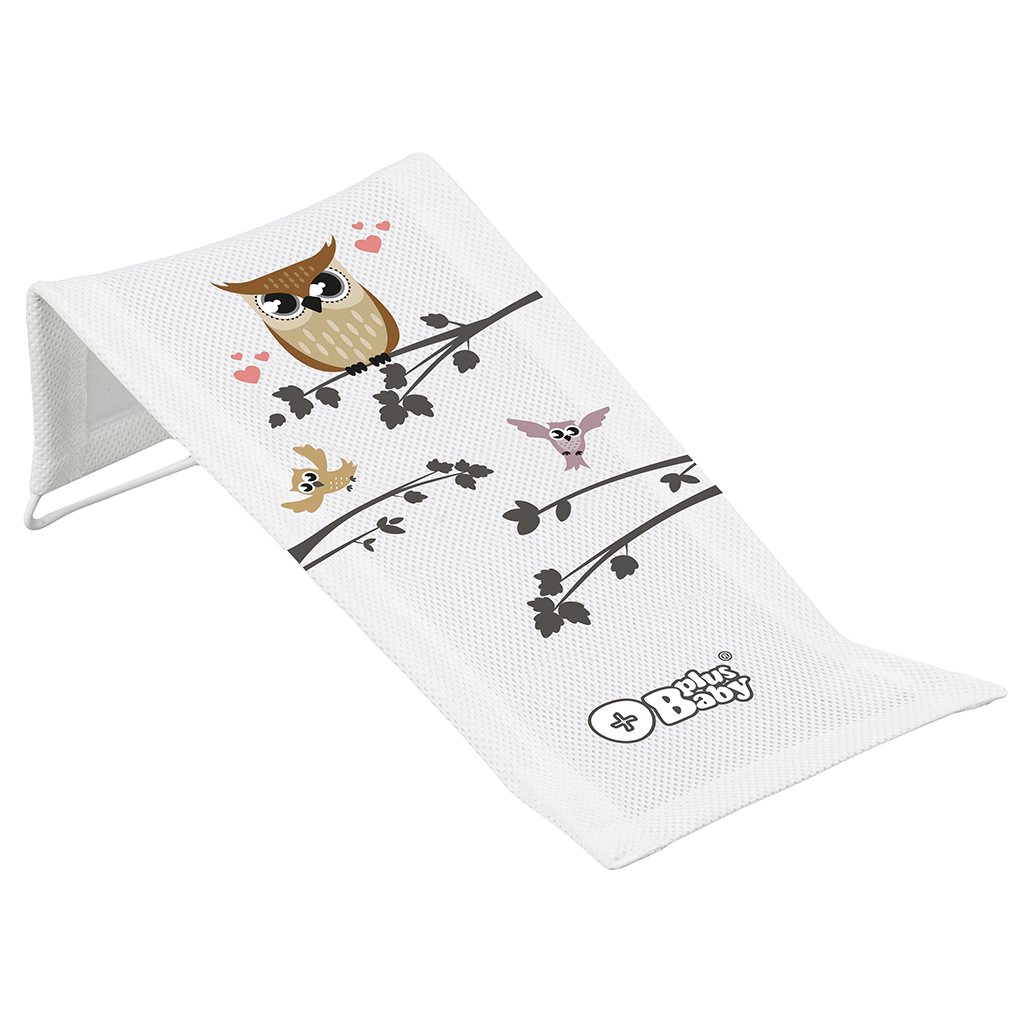 Hamaca de tela para bañera con diseño de búho. Ofrece un diseño moderno, calidad en la elaboración y un fácil mantenimiento. Es un asistente muy práctico en el cuidado del bebé. Facilita el baño seguro del recién nacido y, gracias a su forma anatómica, ayuda a sostener al bebé en el agua. El bebé está más relajado en la hamaca y el baño se convierte en un momento de alegría. Colocas al bebé en la suave hamaca y luego tienes las dos manos libres para lavarlo cómodamente. Material: marco de acero, funda textil. La funda textil está tensada sobre el marco y se puede quitar fácilmente y lavar en la lavadora. Dimensiones: largo x ancho aproximadamente 42x20 cm.