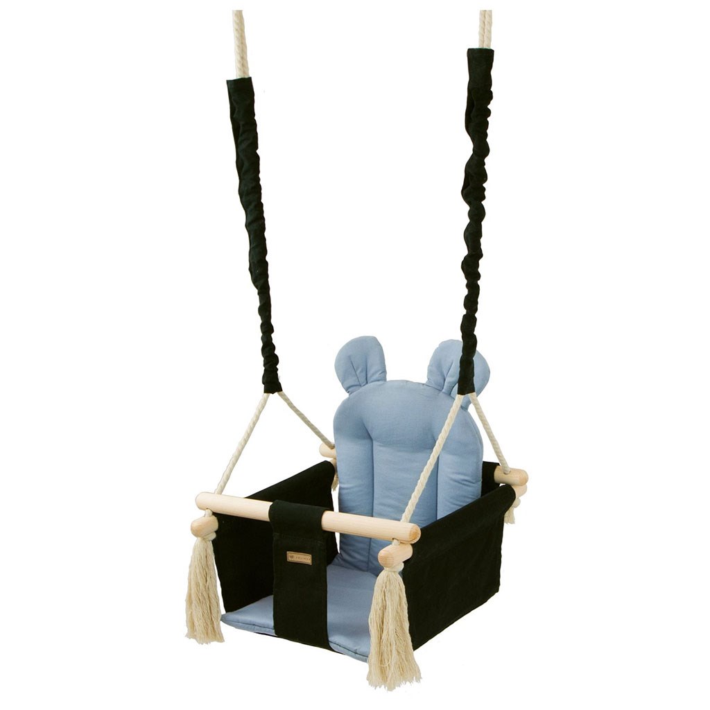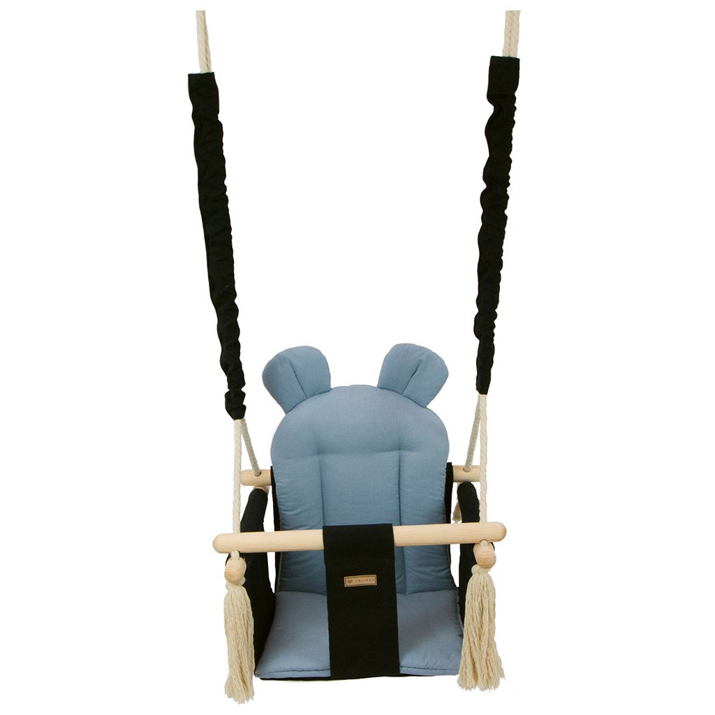 Un elemento adicional de la hamaca son las adorables orejitas y un suave cojín colocado en el asiento, que aumenta la comodidad del niño que juega.