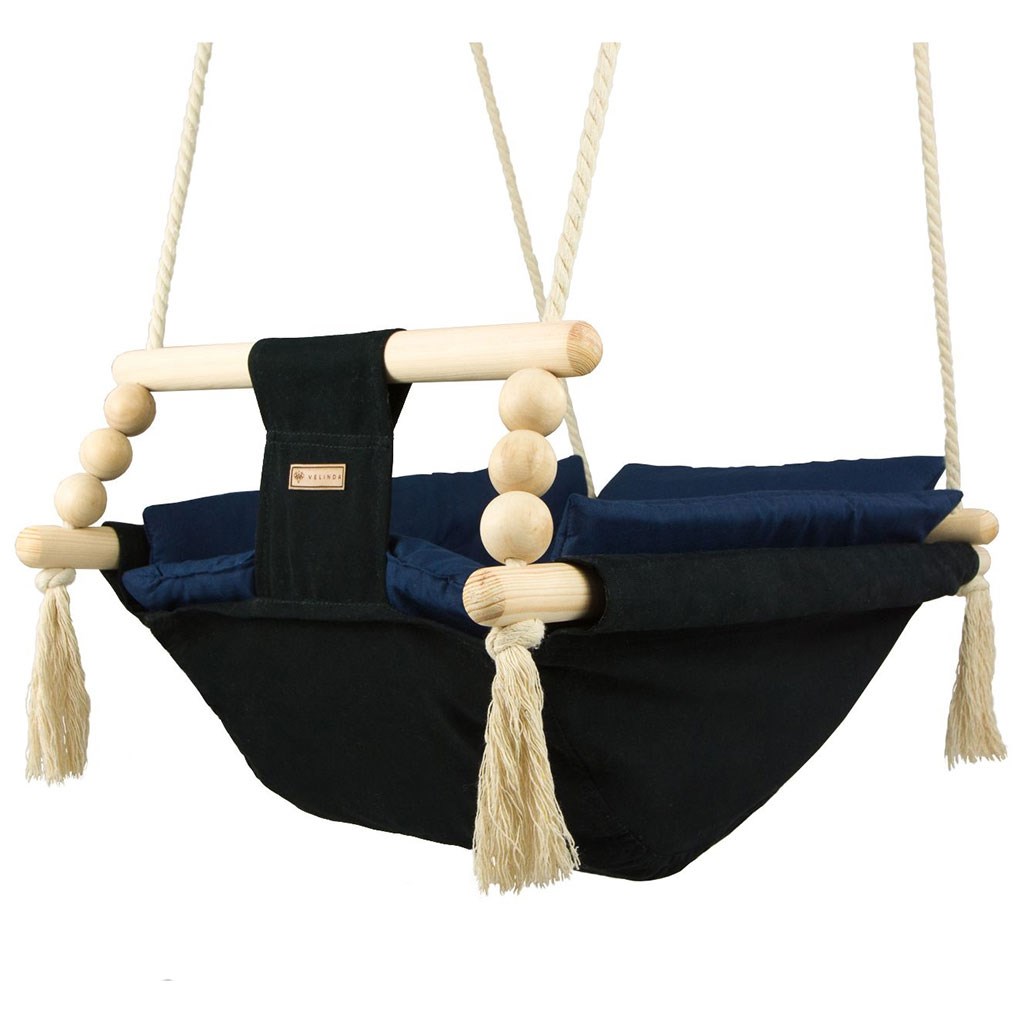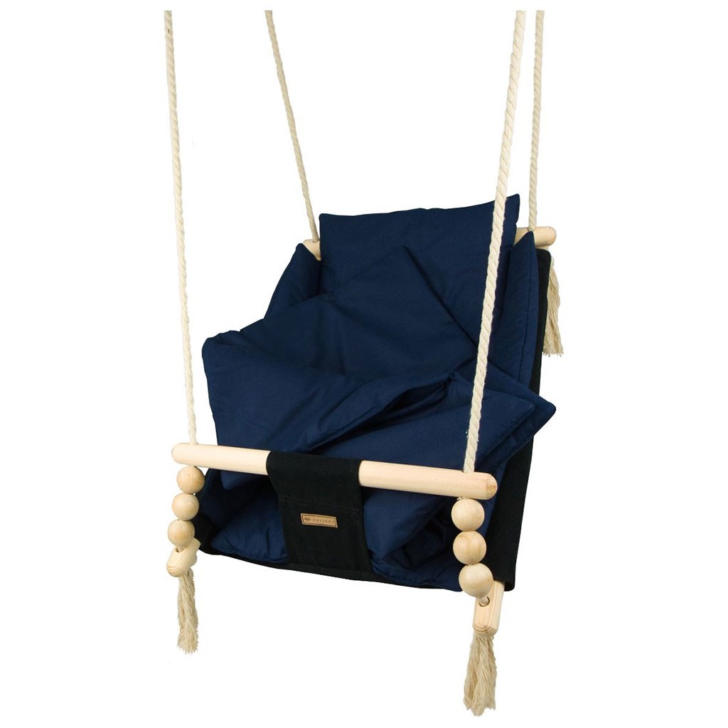 Gracias al uso de algodón agradable al tacto, el niño se siente acogedor, cómodo y seguro. Las fuertes cuerdas de algodón están equipadas con ruedas de metal, lo que permite instalar la hamaca también en la terraza, el porche o el jardín.