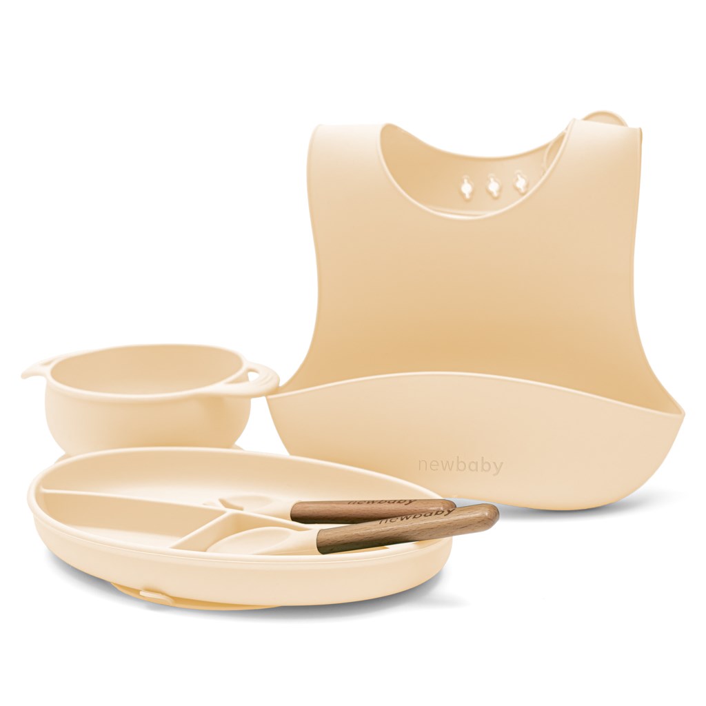 Presentamos un elegante y práctico set de silicona New Baby, diseñado con amor por los niños y pensado para la comodidad de los padres. Este set es ideal para la alimentación diaria y como un regalo perfecto.