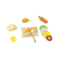 El juego de cocina de madera de Viga es un excelente juguete para desarrollar las habilidades culinarias y manuales de su bebé. El set incluye una tabla de cortar y un cuchillo, lo que permite al niño comprender cómo cortar los alimentos en trozos y al mismo tiempo mejorar la coordinación mano-ojo. Cada pieza de comida tiene un velcro para un fácil montaje y desmontaje.