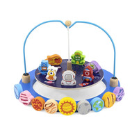 Se trata de un juego de equilibrio con temática espacial. Los niños pueden jugar con este conjunto buscando bloques de peso similar y colocándolos en el lugar correcto para que se mantengan en equilibrio y no caigan.