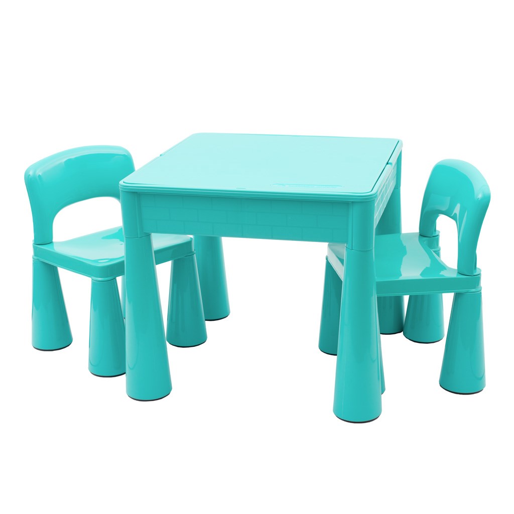 El conjunto infantil New Baby incluye una mesa y 2 sillas. La mesa es muy práctica, al girar la parte superior se convierte en una base para construir con bloques de Lego Clásico y Lego Duplo. Debajo de la parte superior hay un espacio para almacenar juguetes, material de dibujo, etc. En esta área, al quitar la parte superior, también se puede verter un poco de agua, y el niño podrá disfrutar al máximo de sus juegos acuáticos favoritos, o se puede convertir en un mini arenero. Dimensiones: mesa 51x51x46cm, silla 36x32x46cm (an, pr, al). La altura del asiento es de 25 cm.