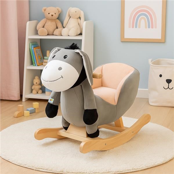 Increíblemente hermoso burro de madera PlayTo con muchas características. El juguete tiene una silla de montar, asas de madera y escalones de madera para los pies. Balancearse es muy importante para los pequeños, ya que estimula sus sentidos. El burro toca una melodía al presionar su pata. Las patas son suaves y móviles. El niño puede alcanzar fácilmente la pata desde el asiento y activar una canción de cuna. El burro está hecho de material de felpa suave, lo que permite a su niño disfrutar de un gran entretenimiento durante mucho tiempo. La silla de montar es cómoda, segura y perfectamente diseñada. Apto para niños desde 18 meses. Dimensiones: Juguete con parte oscilante: largo x alto x ancho: aproximadamente 65x60x40 cm. Altura del asiento desde el suelo: aproximadamente 25 cm. Asiento: ancho x profundidad x alto: aproximadamente 20x17x26 cm. Escalón para los pies: largo x ancho: aproximadamente 13x3 cm.