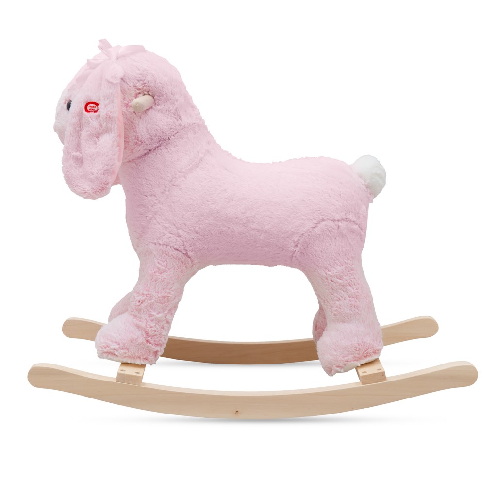 Los patines de madera estables y los agarres aseguran un balanceo seguro, mientras que la melodía activada por un botón desarrolla el sentido del oído y proporciona a los niños mucha alegría. El conejito tiene un asiento cómodo sin respaldo, ideal para los pequeños que ya saben mantener el equilibrio.