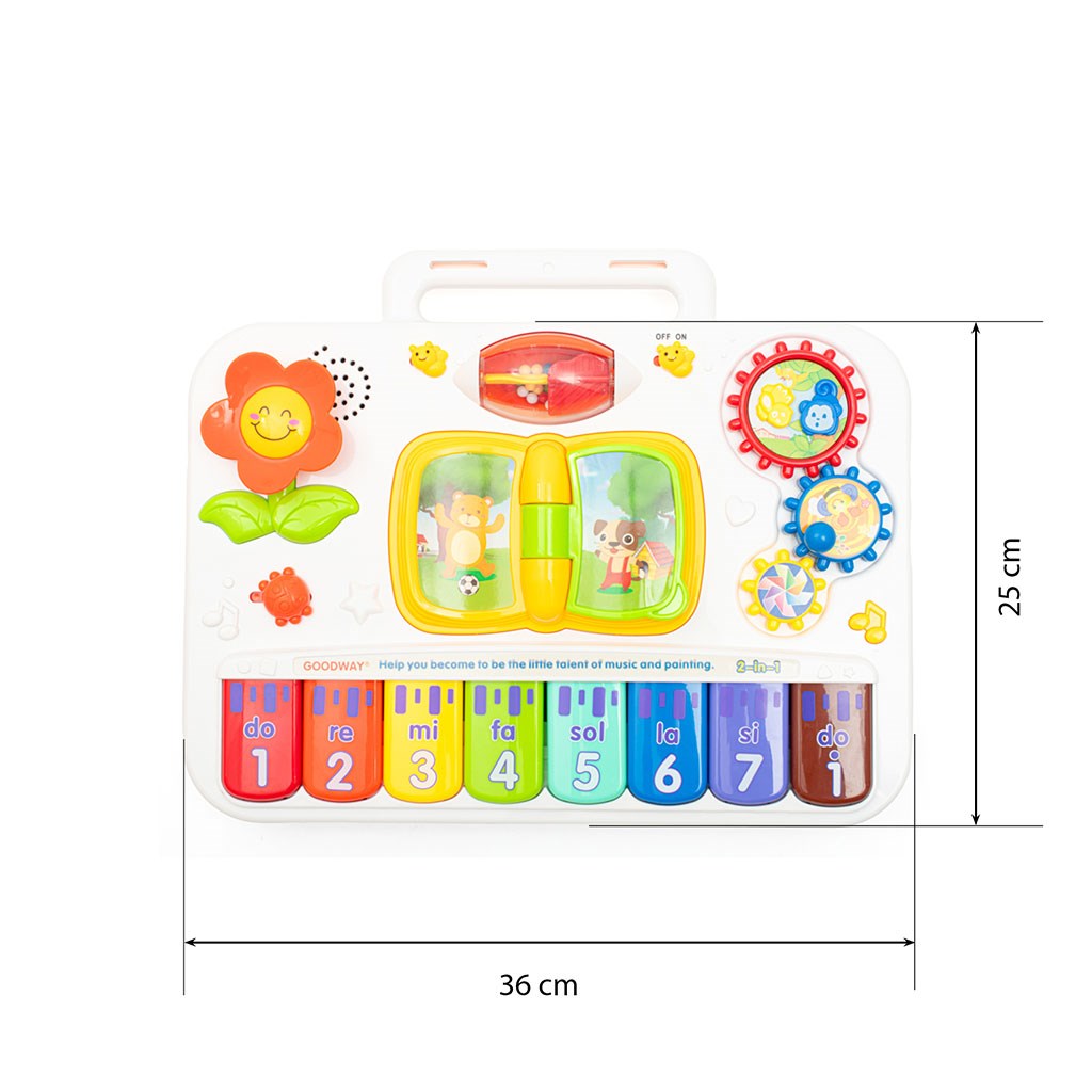 Un piano musical con diferentes sonidos y melodías que desarrollan la audición y las habilidades musicales.