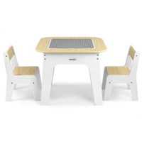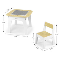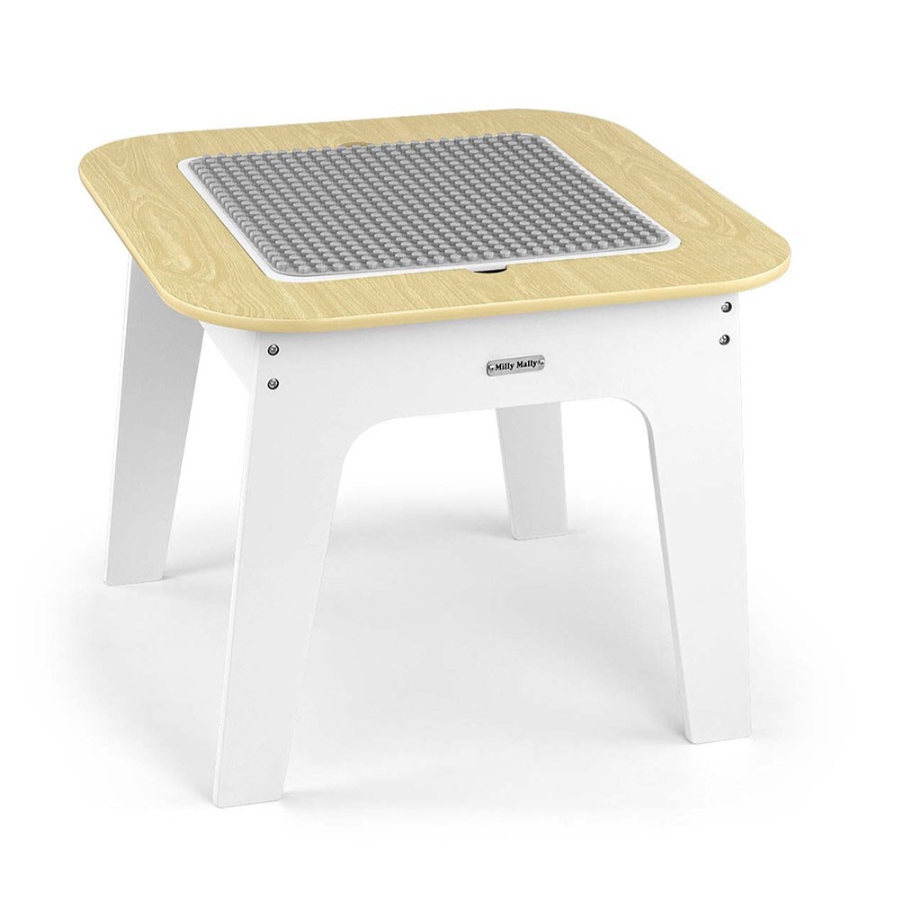 El conjunto Olaf Blocks se destaca por su única superficie de mesa: un lado está adaptado para bloques de construcción, lo que lo convierte en una base ideal para construir. El otro lado es liso y perfecto para dibujar, escribir o realizar otras actividades artísticas. La superficie es desmontable y debajo se encuentra un espacioso espacio de almacenamiento, que facilita el almacenamiento de juguetes, bloques o materiales artísticos, ayudando a mantener el orden.