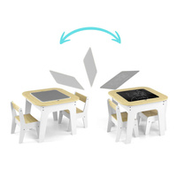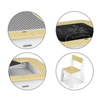 Las sillas son ligeras, por lo que los niños pueden moverlas fácilmente, y su construcción estable junto con los bordes redondeados garantizan un uso seguro. Los muebles están hechos de MDF de alta calidad, lo que les confiere durabilidad, son fáciles de limpiar y se ensamblan sin dificultad. El paquete incluye todos los elementos necesarios para un montaje rápido y sencillo.