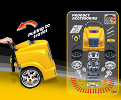 El juguete incluye efectos de luz y sonido que añaden emoción y realismo a la experiencia de juego. Gracias al juego de herramientas y las partes móviles, los niños pueden reparar coches, cambiar neumáticos, apretar tornillos y aprender los fundamentos de la mecánica a través de la acción. Fomenta el desarrollo de habilidades manuales y pensamiento lógico, y apoya el aprendizaje a través del juego.