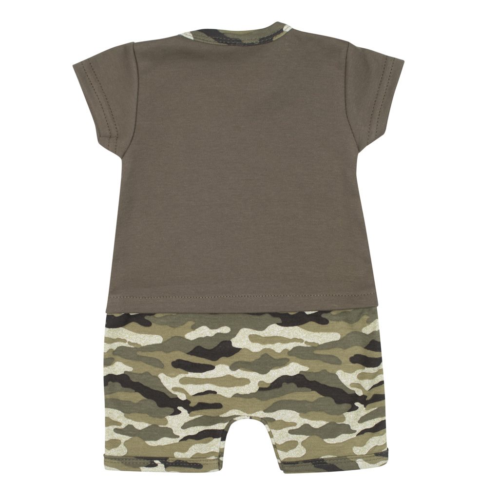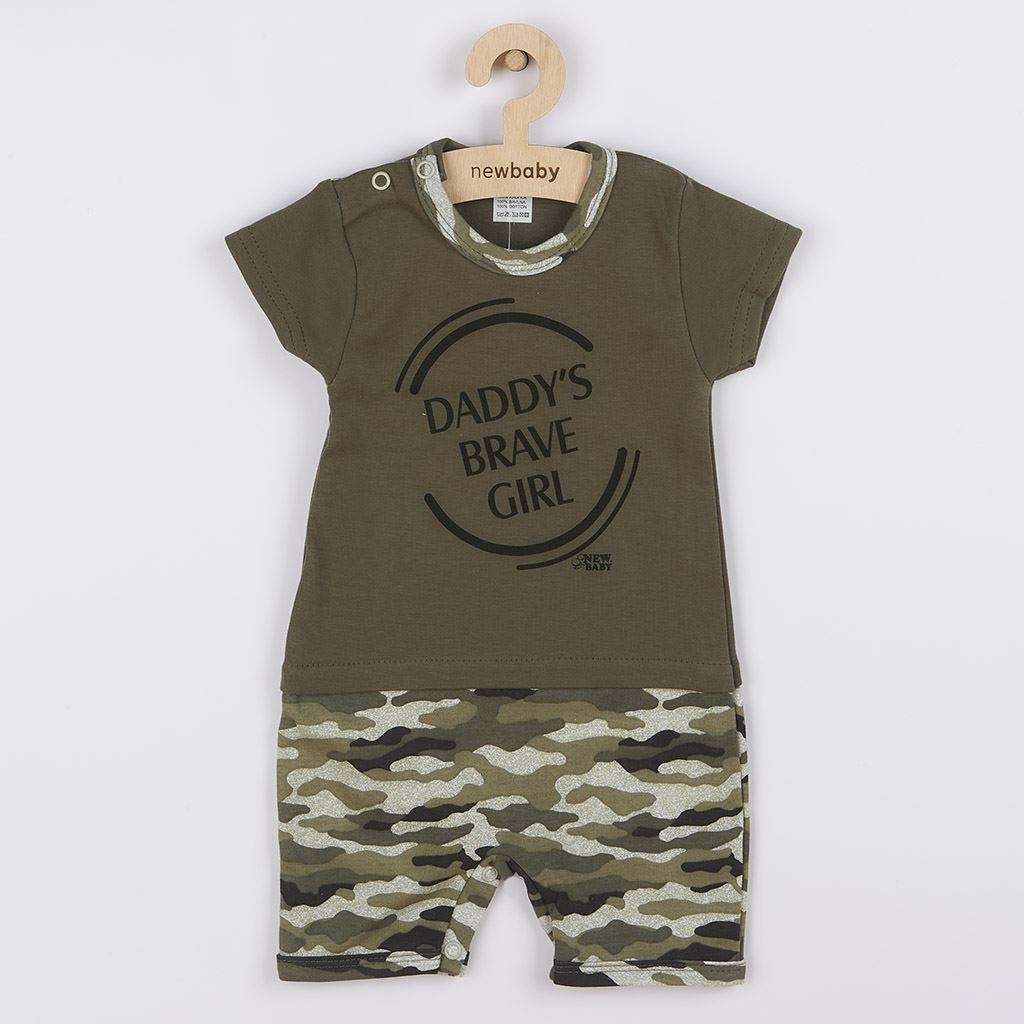 Overol de verano de algodón con mangas cortas de la marca checa New Baby Army. Este overol para niña está decorado con un estampado de camuflaje y la frase DADDY'S BRAVE GIRL. Cuenta con un práctico cierre de presión en los hombros y entre las piernas, lo que facilita el vestir y cambiar al bebé. Este travieso overol de verano hará brillar a todos los niños. El estilo militar ha vuelto a estar de moda y es impresionante. Enfatizamos la calidad, por lo que gracias a su material agradable, suave y de alta calidad, su bebé se sentirá muy cómodo. Composición: 100% algodón.