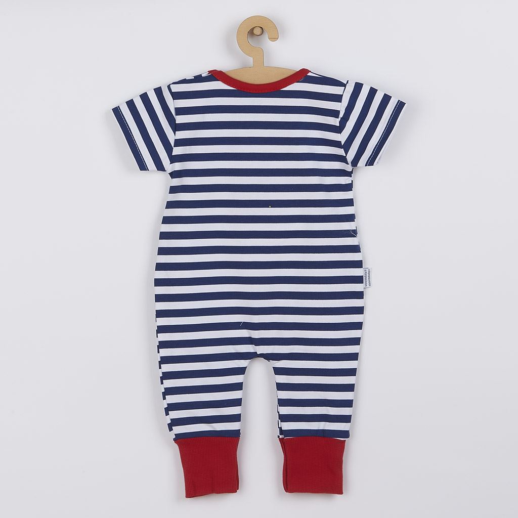 Hermoso y estiloso mono de verano de algodón de la marca checa New Baby Marine para bebés. El mono está completamente estampado con modernas rayas y cuenta con una hermosa aplicación de un barco. La aplicación está reforzada con tela para evitar rasguños. El cierre en el hombro y entre las piernas facilita el vestido y el cambio del bebé. Para los bebés, el mono es una prenda clave, y con cualquier movimiento, la espalda del bebé permanece siempre cubierta. Para New Baby, la satisfacción del cliente es muy importante, y por eso te ofrecemos nuestra calidad de la colección de verano Marine. Composición: 100% algodón.